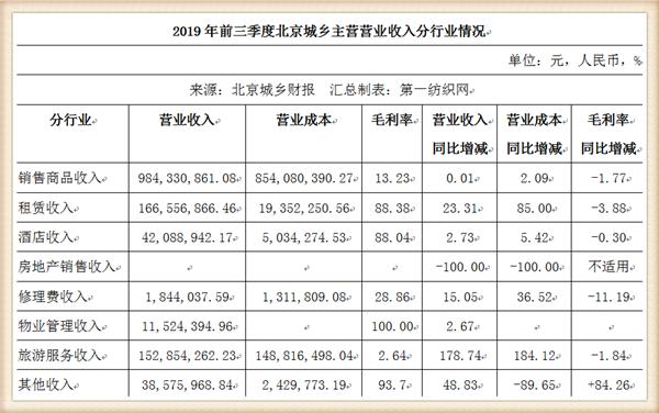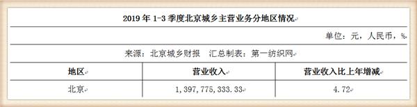財報顯示,2019年前三季度,北京城鄉(xiāng)實現(xiàn)營業(yè)總收入15億,同比增長8.6%;實現(xiàn)歸母凈利潤1047.6萬,同比下降65.6%,降幅較去年同期擴大;每股收益為0.03元。報告期內,公司毛利率為30.3%,同比提高0.7個百分點,凈利率為0.9%,同比降低1.6個百分點。