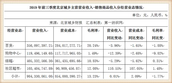 對于業(yè)績下降的原因,北京城鄉(xiāng)解釋稱主要有兩個方面:一是2018年度房地產銷售收入8272萬元,營業(yè)利潤2694萬元。由于2018年度公司創(chuàng)意工作室銷售收入結轉完畢,故2019年度無房地產銷售收入;二是公司全資子公司北京城鄉(xiāng)一一八生活匯超市有限公司,2019年度全年共計關閉門店37家,2019年1-3季度關閉門店12家,2019年4季度集中關閉門店25家,造成主營業(yè)務成本增加。