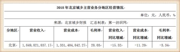2018年,北京城鄉(xiāng)實現(xiàn)營業(yè)收入19.19億元,同比減少13.66%;營業(yè)利潤5676.78萬元,同比減少50.26%;實現(xiàn)利潤總額5865.59萬元,同比減少49.08%;凈利潤4,450.36萬元,同比減少46.48%。