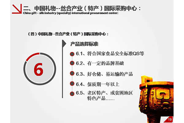 我們要做更多利企惠民的事。因此,在選擇特產(chǎn)時,對于革命老區(qū)特產(chǎn),偏遠貧困地區(qū)特產(chǎn)特別重視。全國特產(chǎn)匯聚一起,整合成老區(qū)特產(chǎn)品牌,作為集中采購區(qū),銷售往全國各地,同時做好國際貿(mào)易,為老區(qū)產(chǎn)品開拓新的國際市場。為支持老區(qū)建設(shè),助力國家精準扶貧獻出自己一份力量。