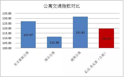 但是,反觀公寓部分,圣元薈的交通優(yōu)勢似乎沒有那么明顯,主要原因在于東方豪庭公寓和麗苑公寓也落子在公交站聚集且靠近王府井地鐵地段,交通便利性不言而喻,且途徑的公交線路較燈市口位置更多,這一主要優(yōu)勢拉開了公寓方面交通指數(shù)的差距。