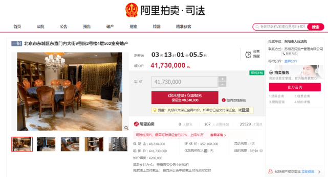 東陽市人民法院將于2021年2月7日10時至2021年2月8日10時止(延時除外)在阿里拍賣平臺上進行公開拍賣活動,拍賣標的為坐落于北京市東城區(qū)東直門內(nèi)大街9號院NAGA上院小區(qū)2號樓4層502室的房地產(chǎn)。
